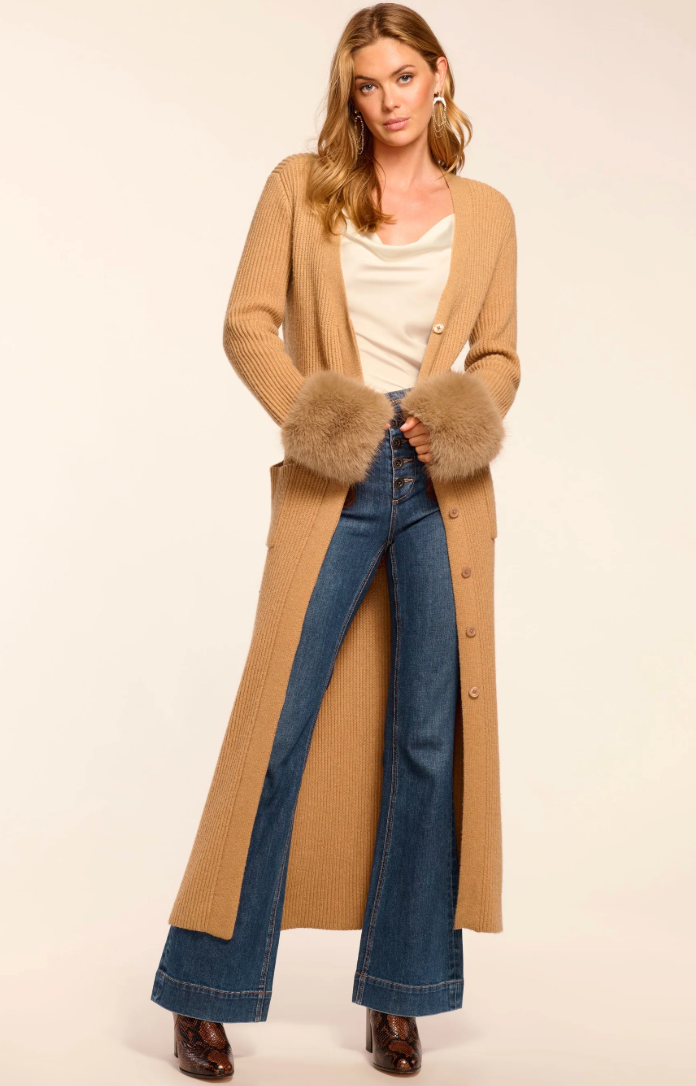 Louise Wool Blend Faux Fur Trim Duster Sweater by Ramy Brook